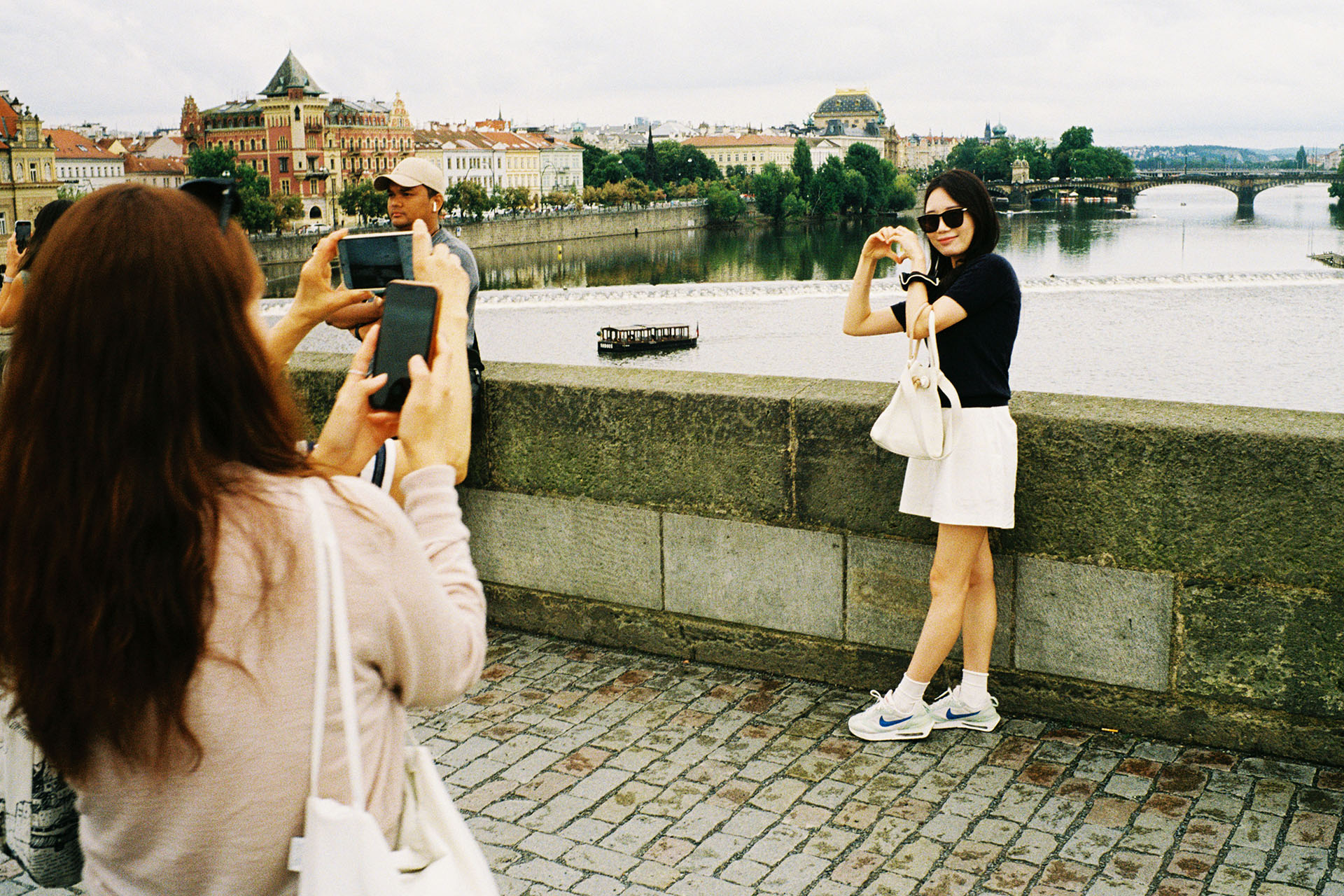 Onwards we march to the Charles Bridge – a medieval stone structure which has provided an important transport route connecting the different sections of Prague since the 1300s (according to Wikipedia). The bridge is so beautiful, that it can apparently be difficult to traverse due to the number of people posing for pictures. Personally, I don’t quite understand why you would want to be on the bridge to get a picture of the bridge – but it proved an excellent place to people watch.