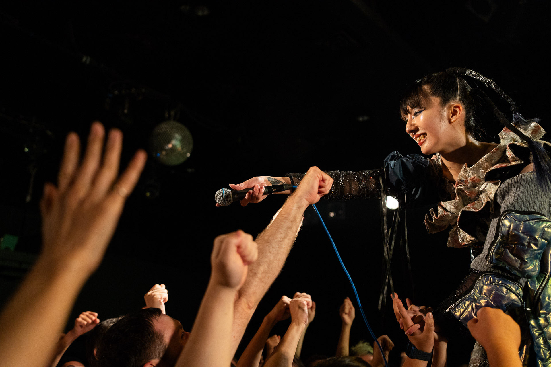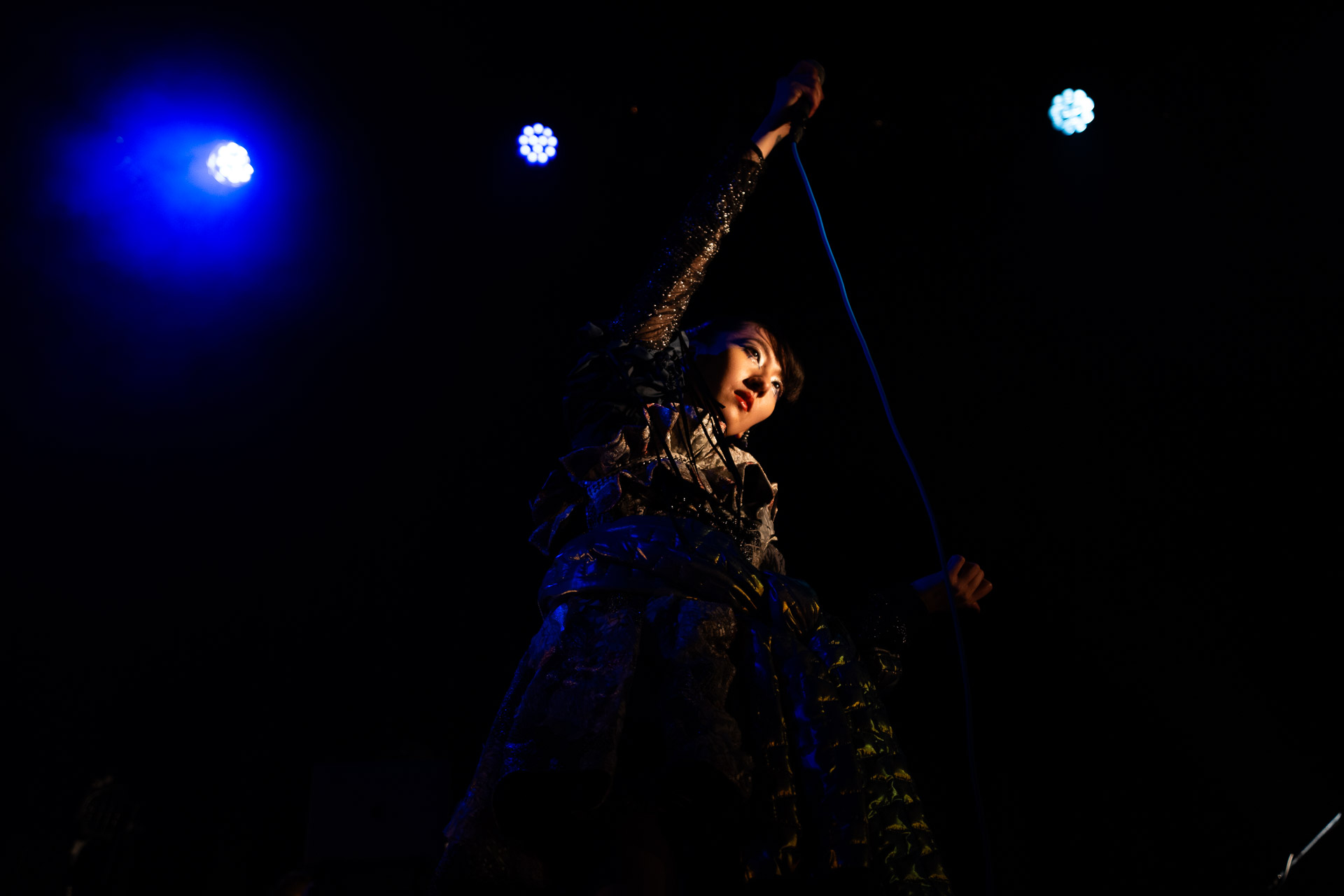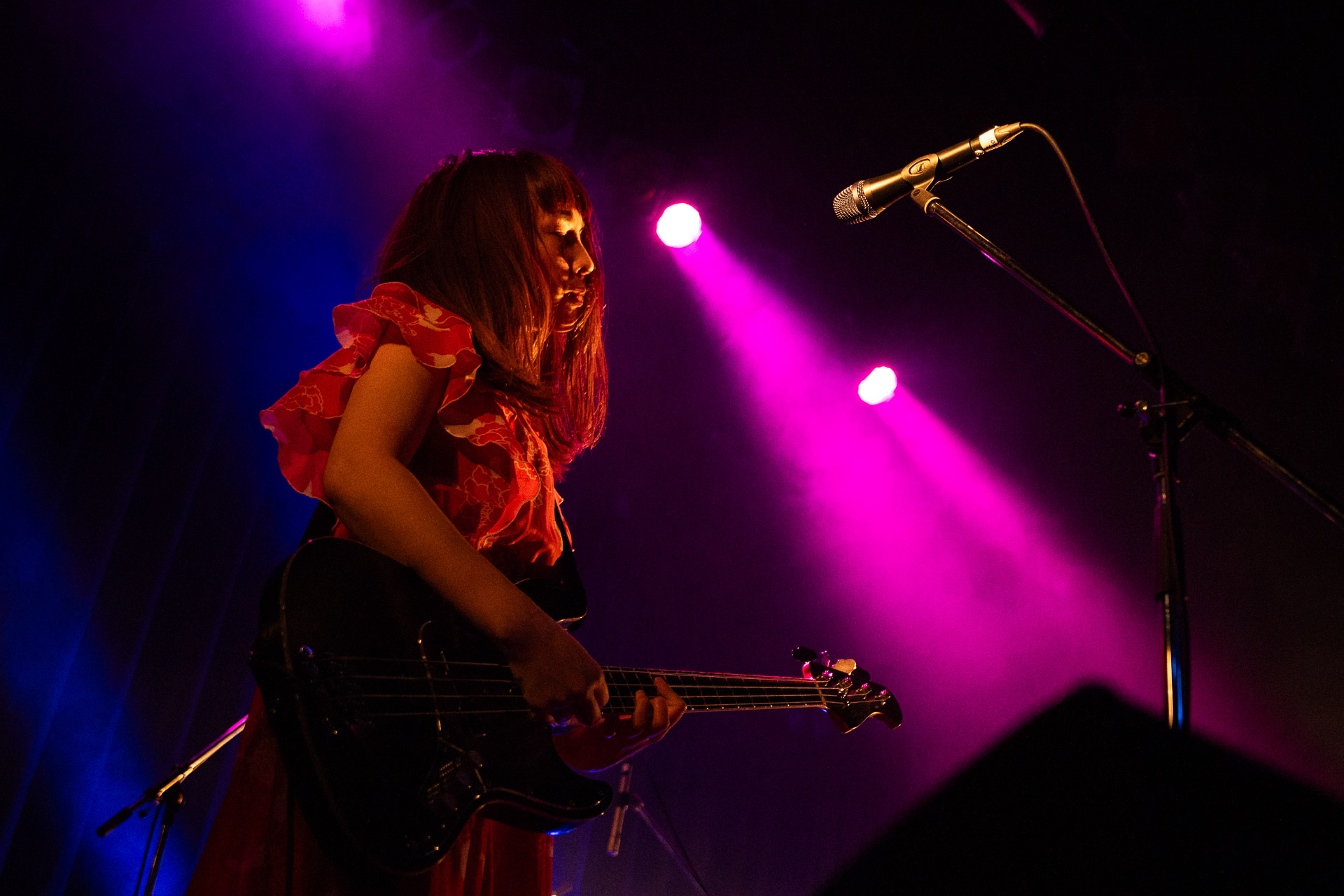 Now I like Haru Nemuri’s music, so getting to see her live back in Glasgow was great, but I also really enjoyed taking pictures. She is very expressive on stage, and a really interesting performer to watch. The venue in Shibuy was much larger than the Hug and Pint, and I was looking forward to seeing her presence expand to match the size. Within just the first few minutes, she had stepped right over my head and onto the barrier to interact with the crowd.