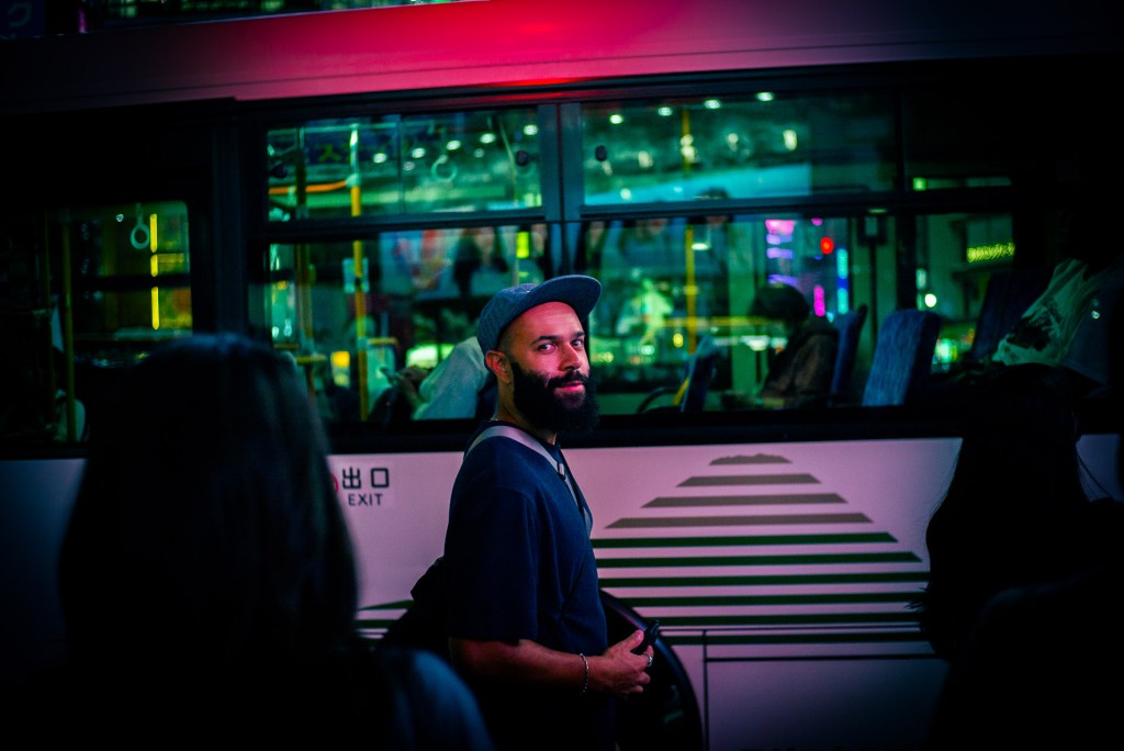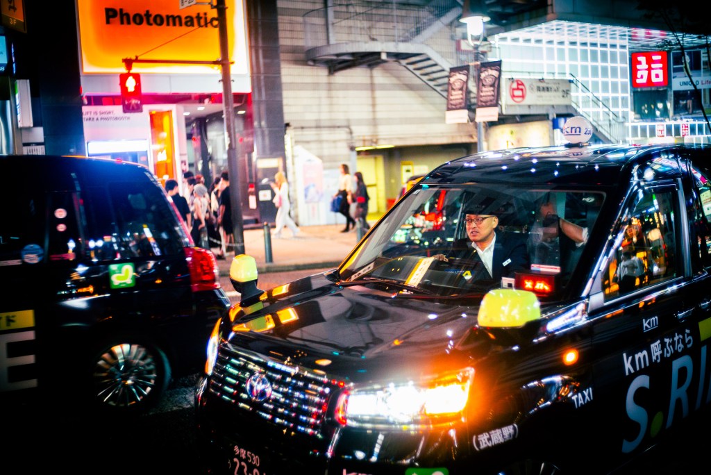 A typhoon had been threatening to hit Tokyo for days, and naturally, it of course started absolutely pishing it down not long after we had arranged to meet. In the end it actually worked out fairly well though, as both the rain and the reflections from the city’s neon looked amazing.